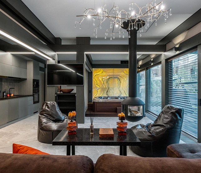 Проект содержит множество уникальных решений, направленных на поддержание физического и душевного здоровья его владельцев. Среди них: спортивный зал, хаммам, аромасауна и массажный кабинет.