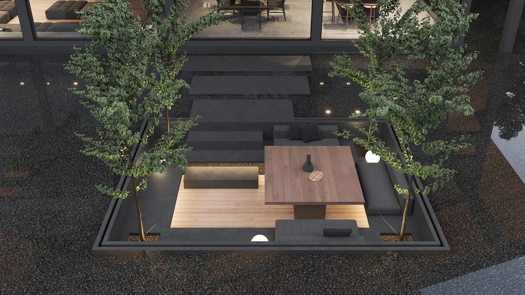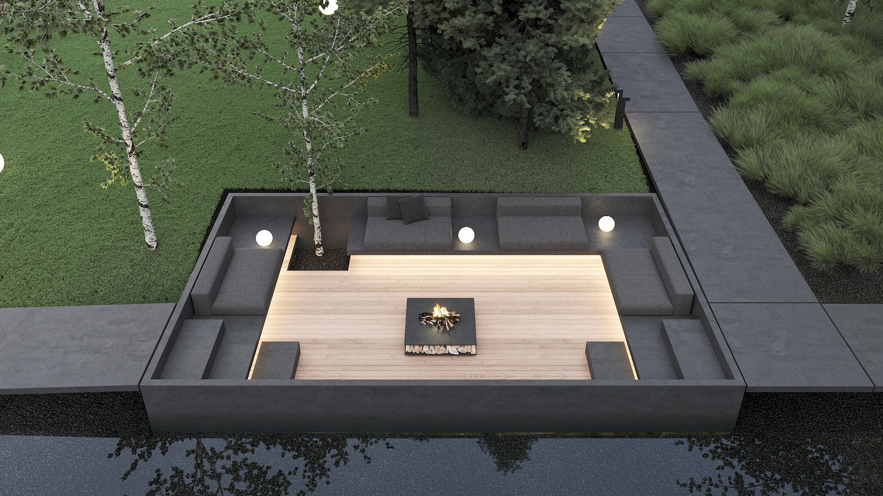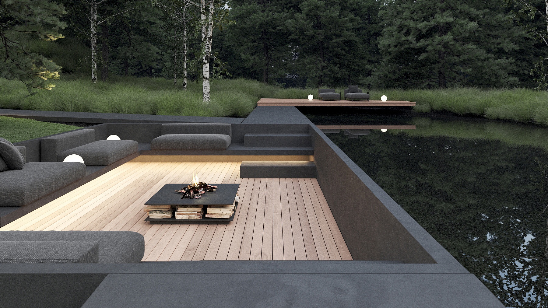 Перед домом “Мэдисон” расположен уличный круглогодичный бассейн с подогревом площадью 300 кв. м. Уличная зона отдыха с костровищем интегрирована в пространство бассейна. Это уникальный и уютный уголок, где великолепно сочетаются стихии воды и огня.