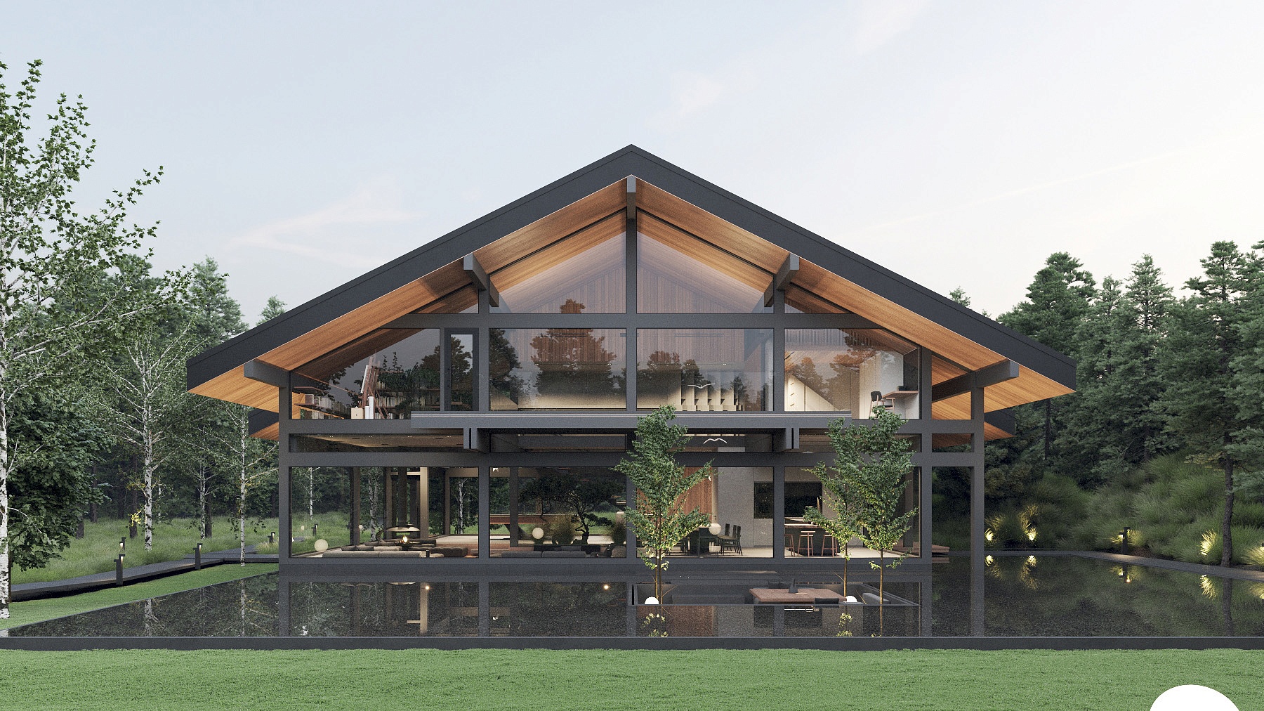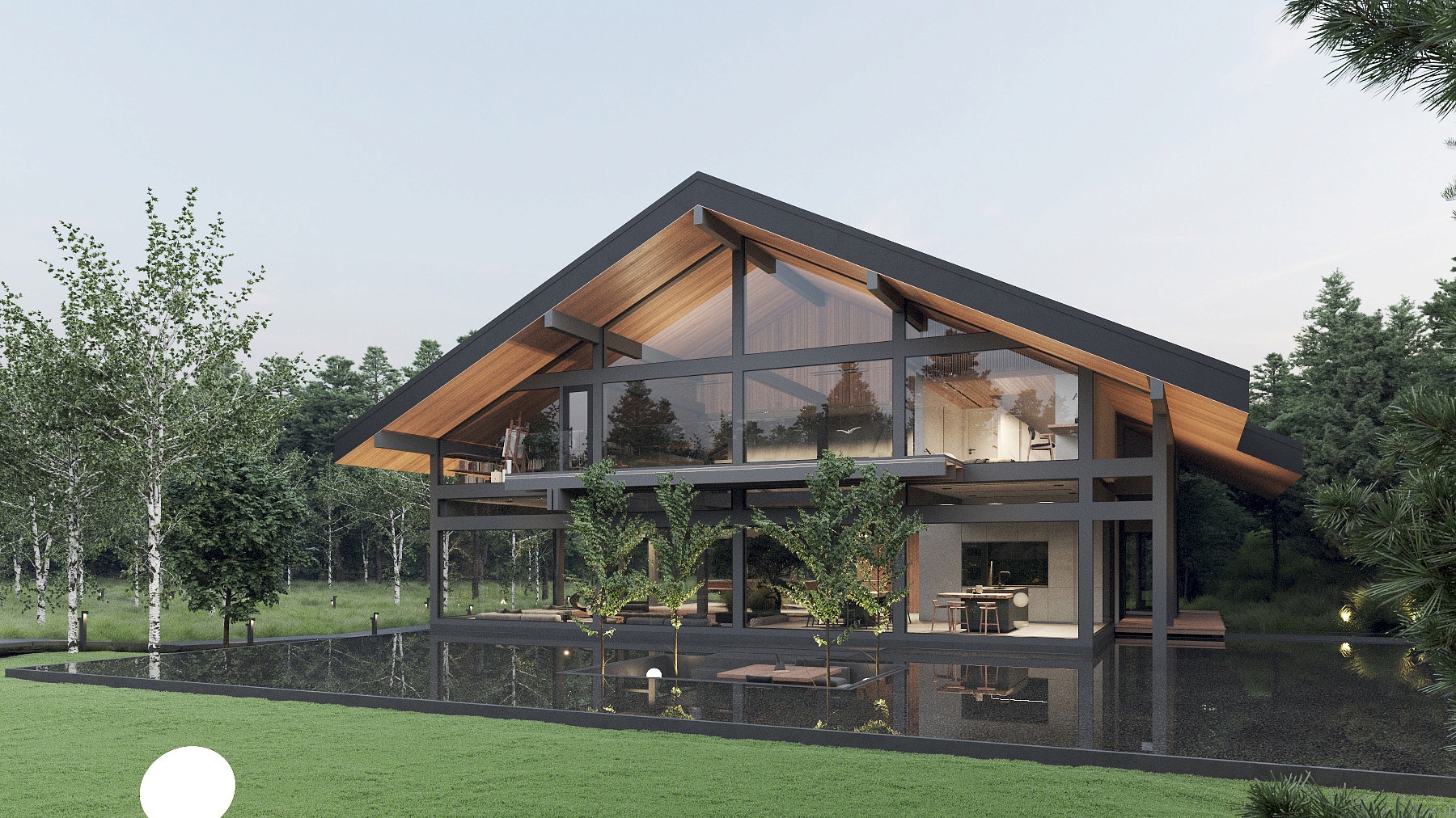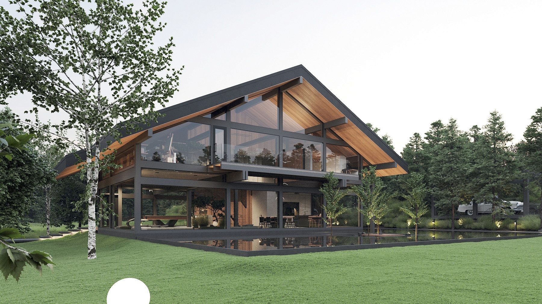 Резиденция “Мэдисон” построена по технологии фахверк и поражает своим размахом. Продуманная архитектура и панорамное остекление дома позволили добиться легкости: он словно сливается с ландшафтом и отражает его.