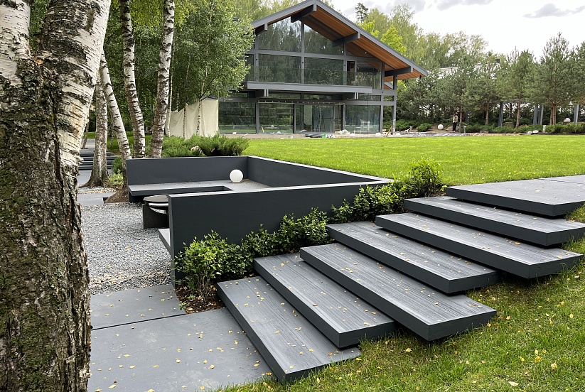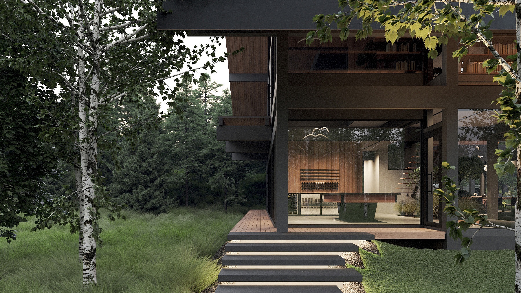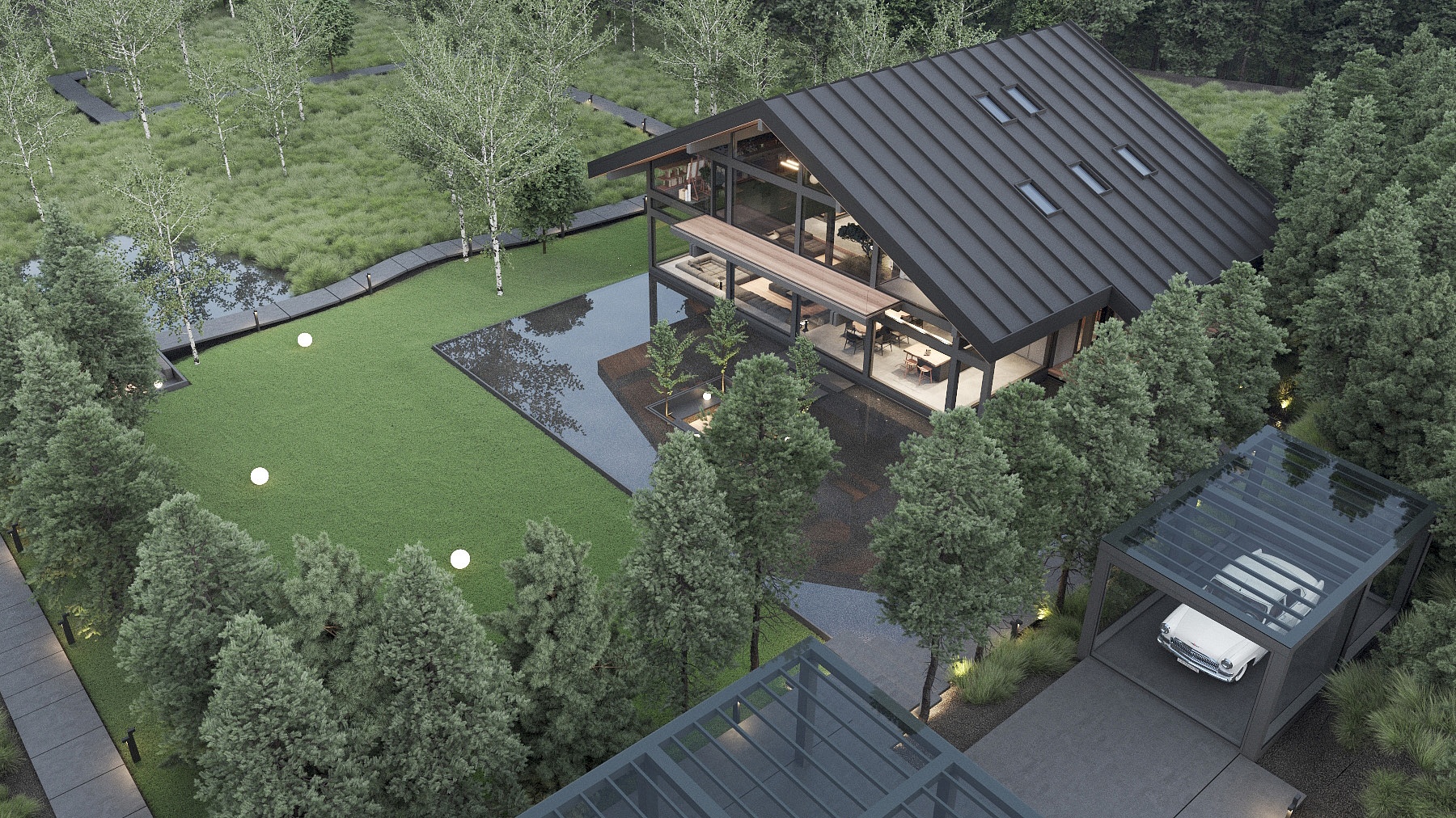 Резиденция “Мэдисон” построена по технологии фахверк и поражает своим размахом. Продуманная архитектура и панорамное остекление дома позволили добиться легкости: он словно сливается с ландшафтом и отражает его.