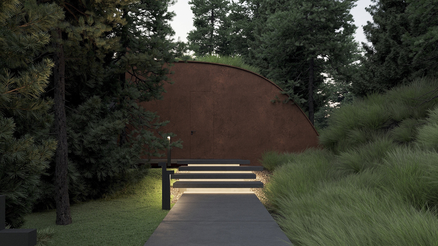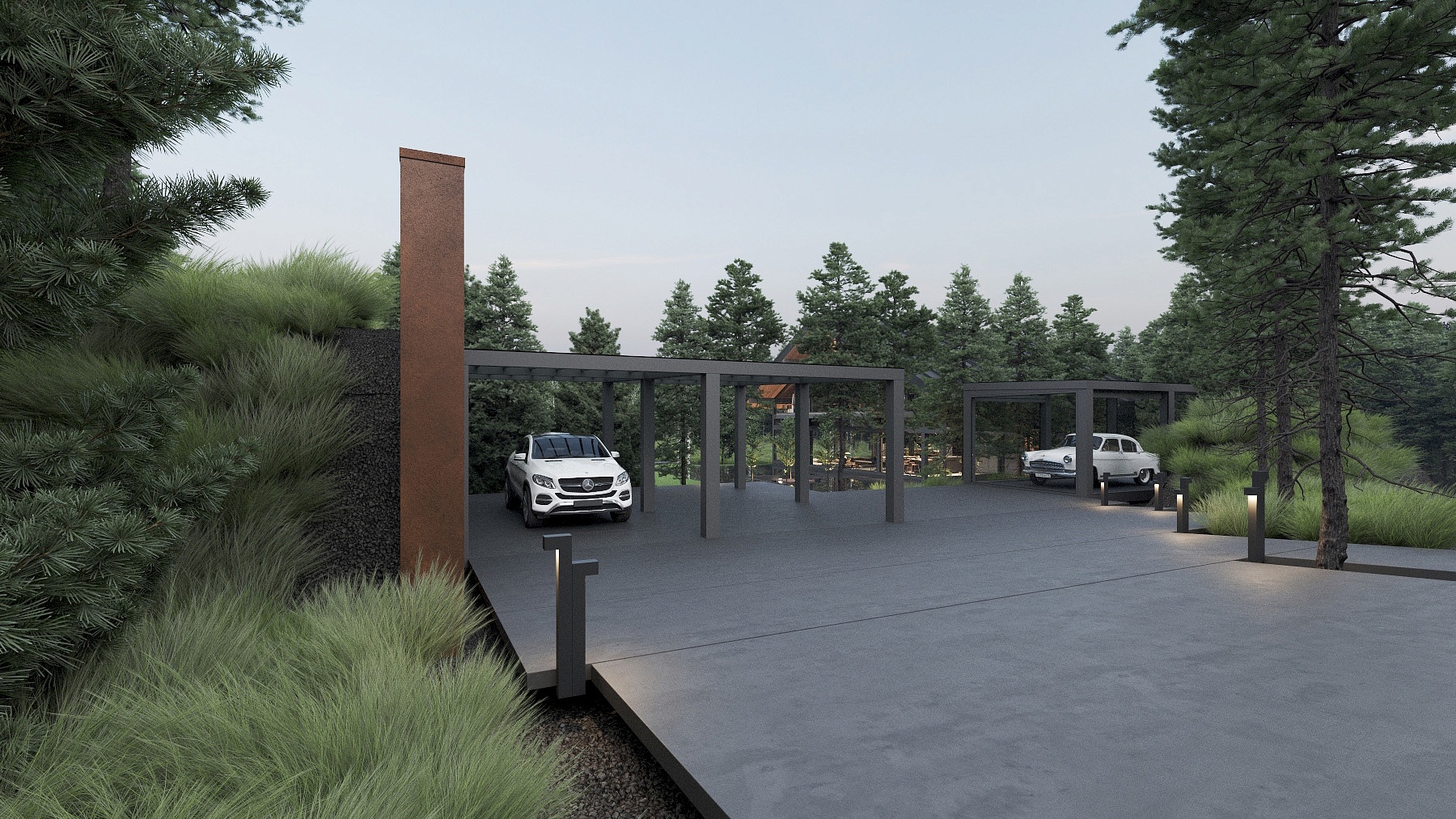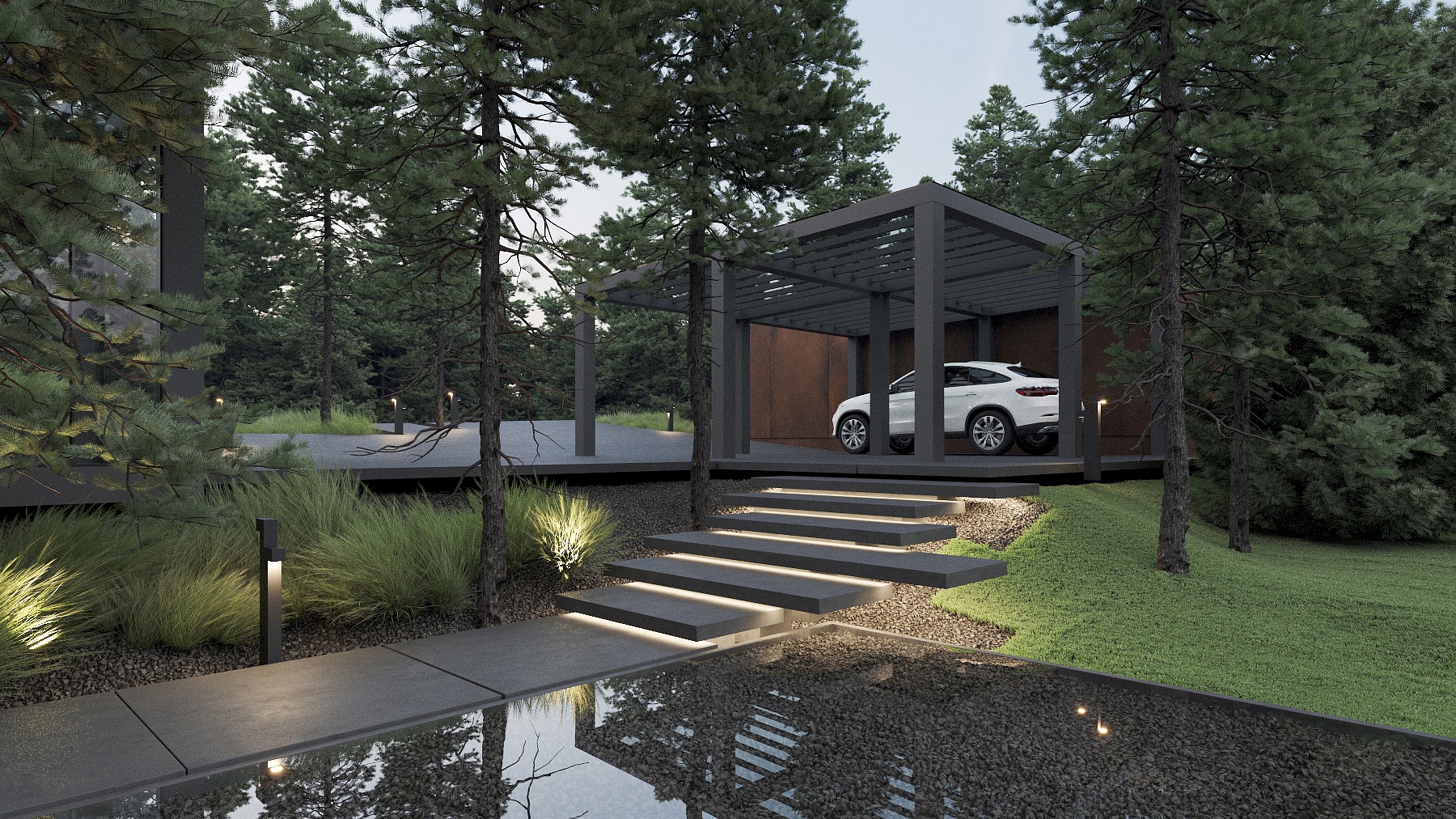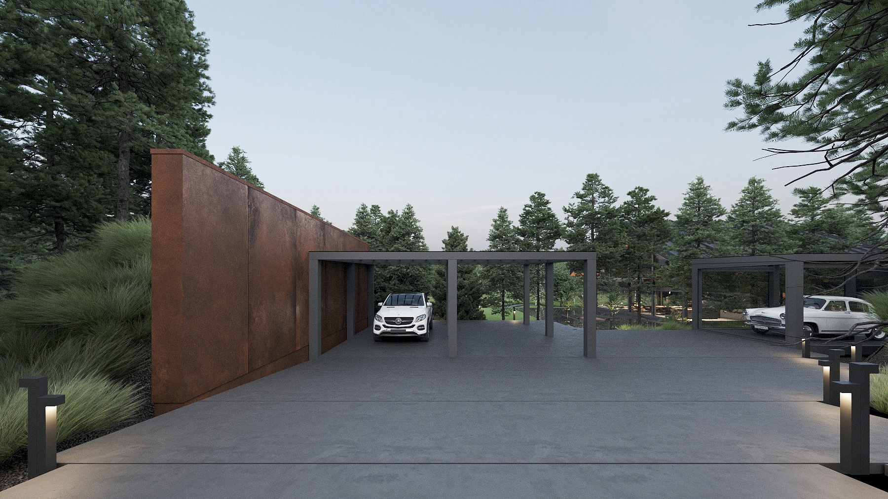 Для ретро-автомобиля заказчика был спроектирован специальный стеклянный гараж.