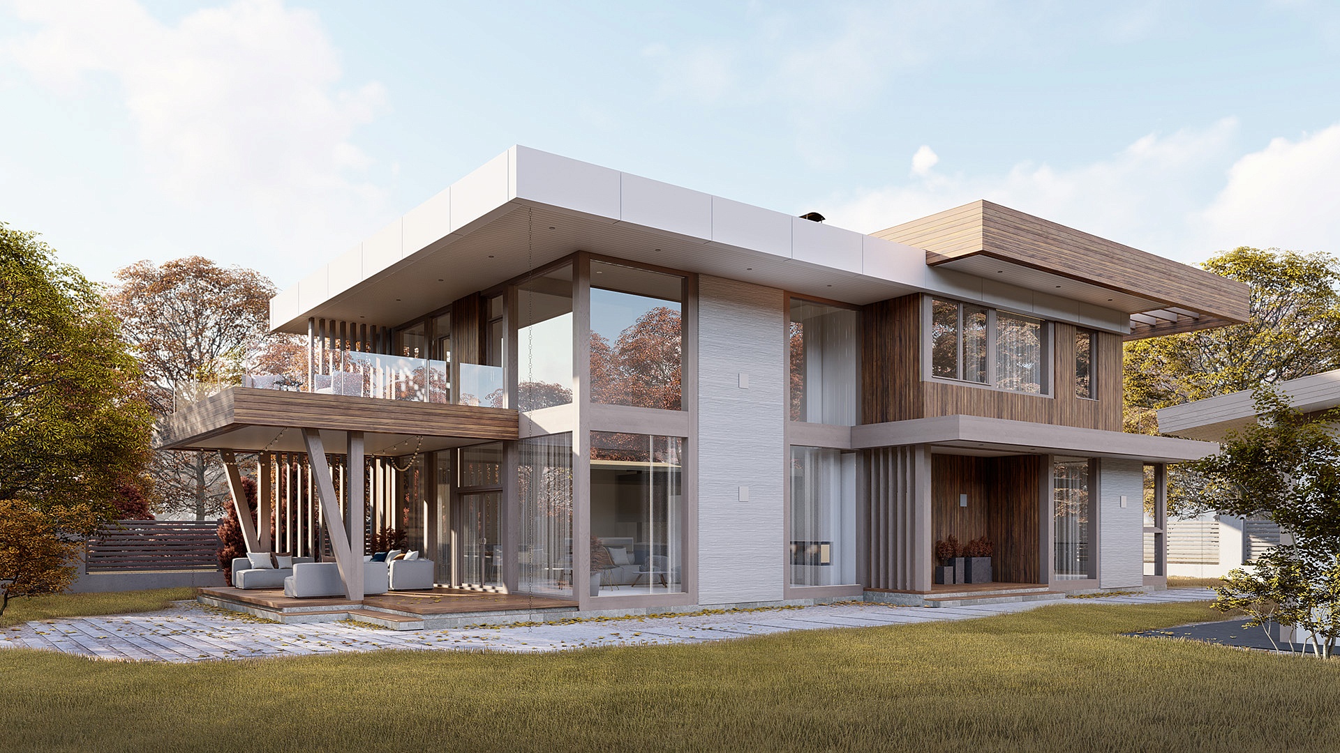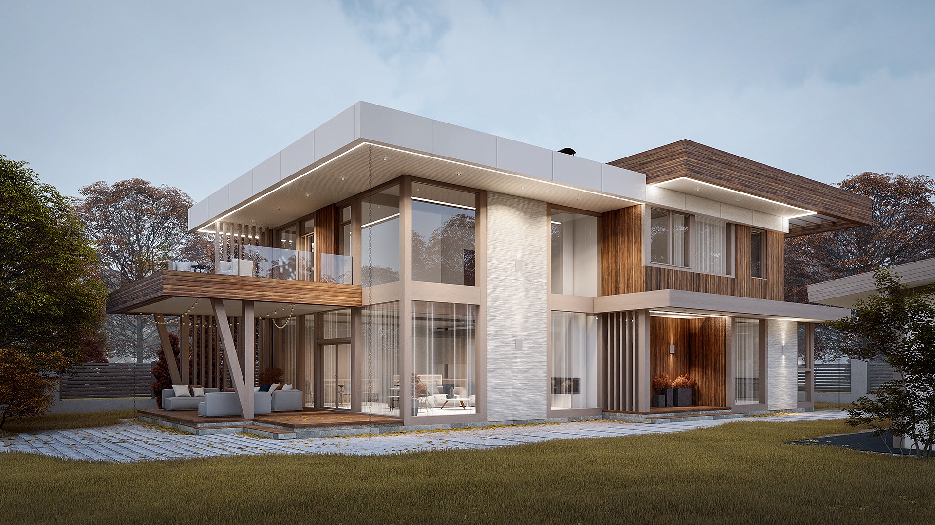 Дом идеально впишется в окружающий ландшафт, будь то холмы, берег реки или лес.
